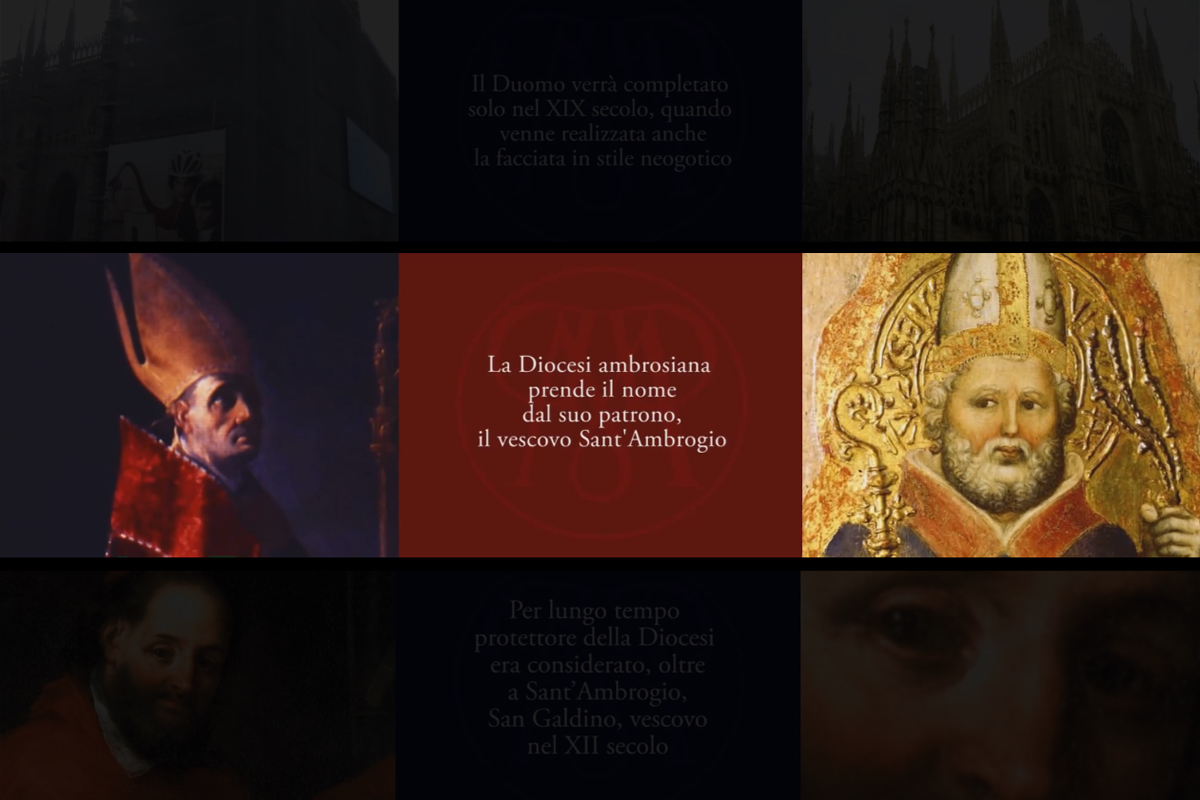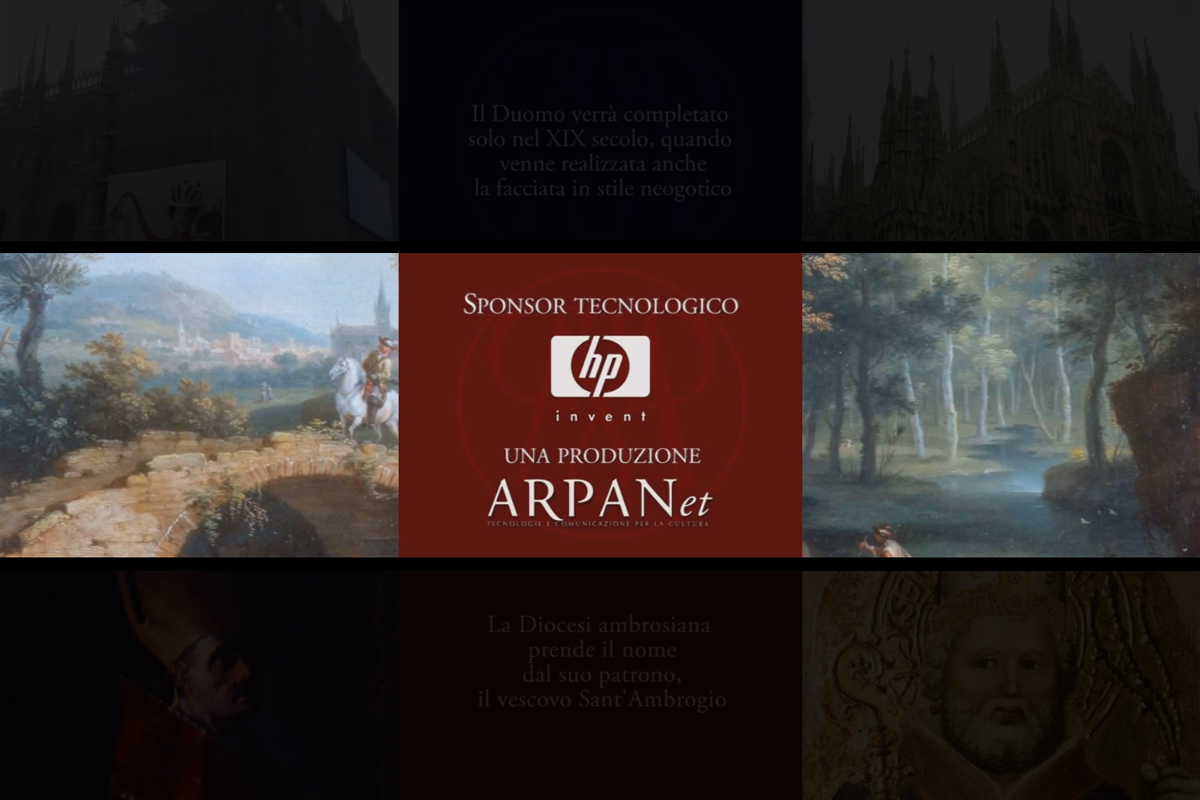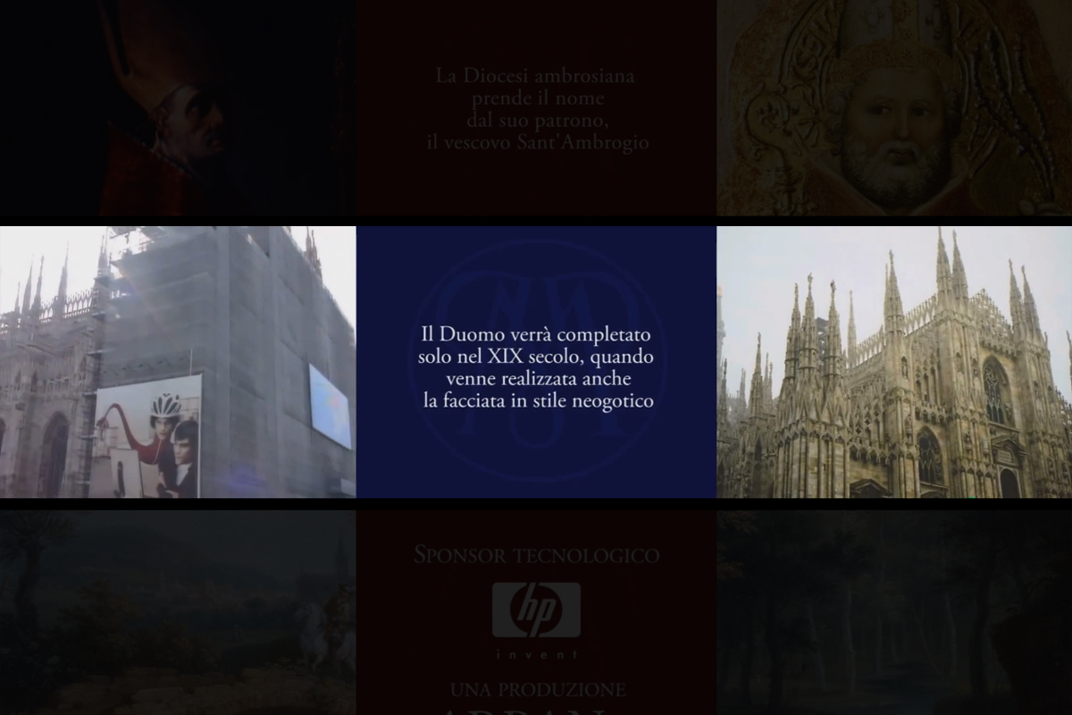 La visualizzazione simultanea multipla di videoclip, immagini e suggestive ricostruzioni tridimensionali, unitamente a sintetici ma esaustivi headlinesdei contenuti da esprimere, prepara il pubblico alla visita al Museo: i tre silenziosi filmati, proiettati in sincronia, raccontano per immagini e brevi incisi scritti la storia e la natura della Diocesi ambrosiana e del Museo Diocesano.