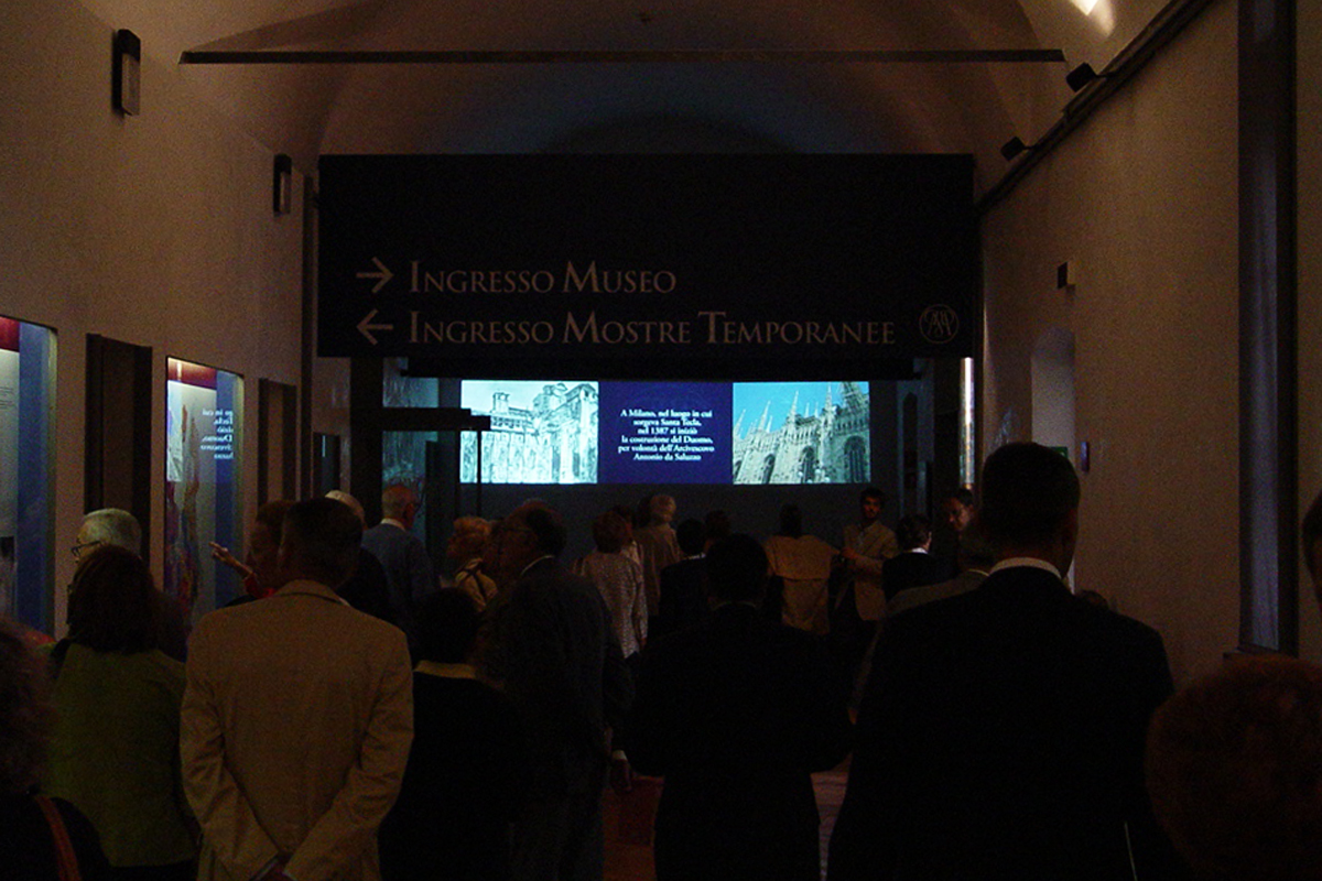 La comunicazione dei valori di cui il Museo Diocesano si fa portatore inizia sulla soglia d’ingresso: è pensando ai primi passi che il visitatore compie, varcandola, che hanno preso corpo forme ed essenza della Multivisione.
